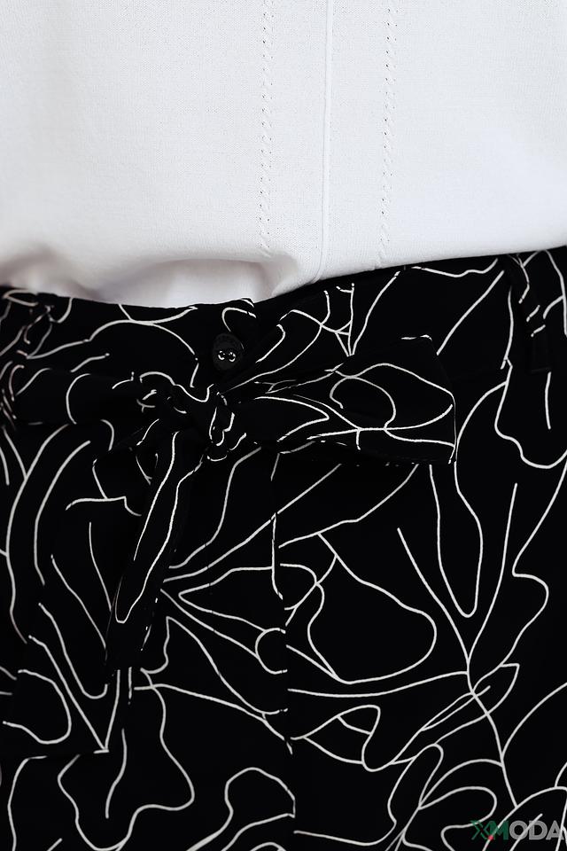 Женские брюки Zerres чёрного цвета с оригинальным растительным принтом. Модель выполнена из мягкой и приятной к телу вискозы, имеет завышенную талию и пояс с завязками. Состав: вискоза 100%