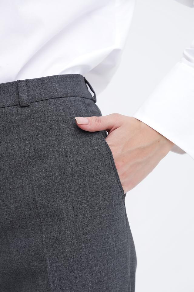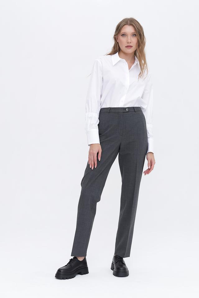 Преобладающий цвет брюк – серый, с едва заметным меланжированным рисунком, что придает им изысканность и универсальность. Они легко сочетаются с различными видами блузок, рубашек и жакетов.