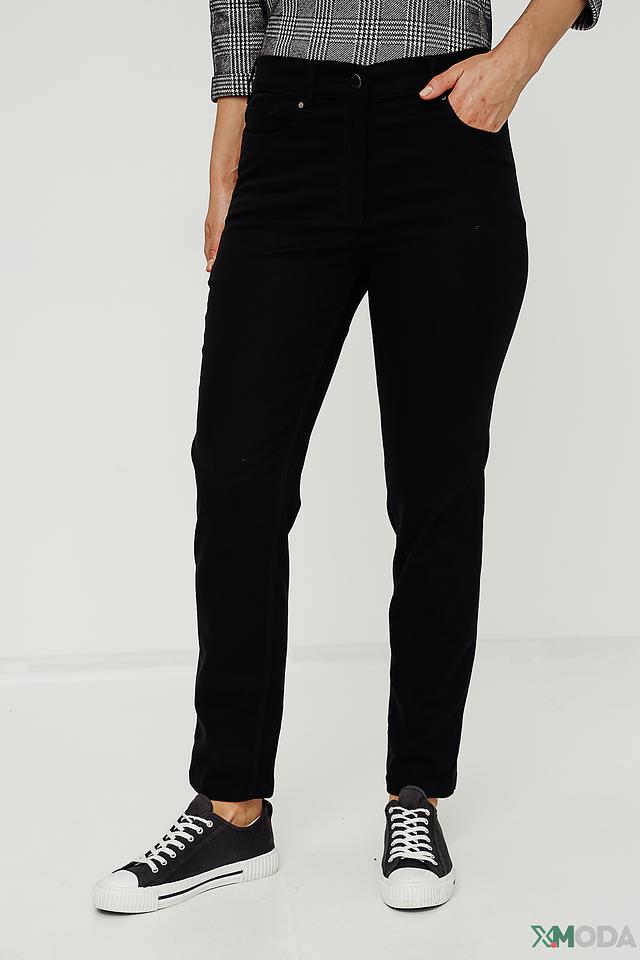 Цвет брюк – насыщенный чёрный, что делает их легко сочетаемыми с различными элементами одежды и обуви. Брюки имеют стандартную посадку на талии, застежку на молнию и пуговицу, а также функциональные карманы. Идеальный выбор для создания стильных и комфортных образов.