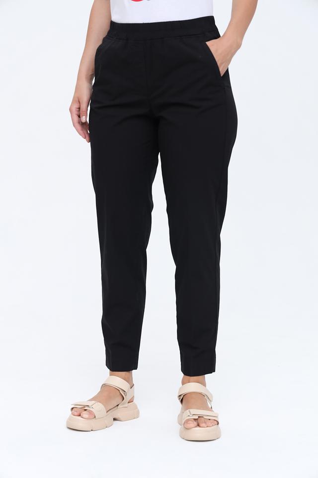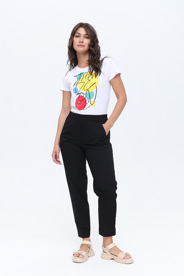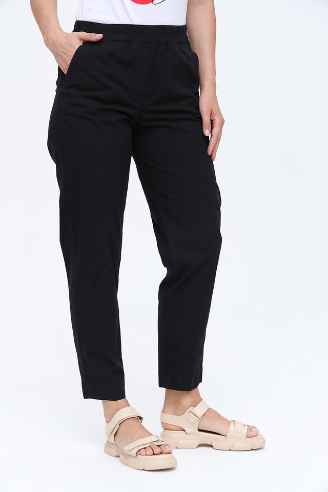 Брюки имеют прямой крой, который обеспечивает свободу движений и подходит для любой фигуры. Эластичный пояс с утяжкой гарантирует комфортную посадку. Модель дополнена боковыми карманами.