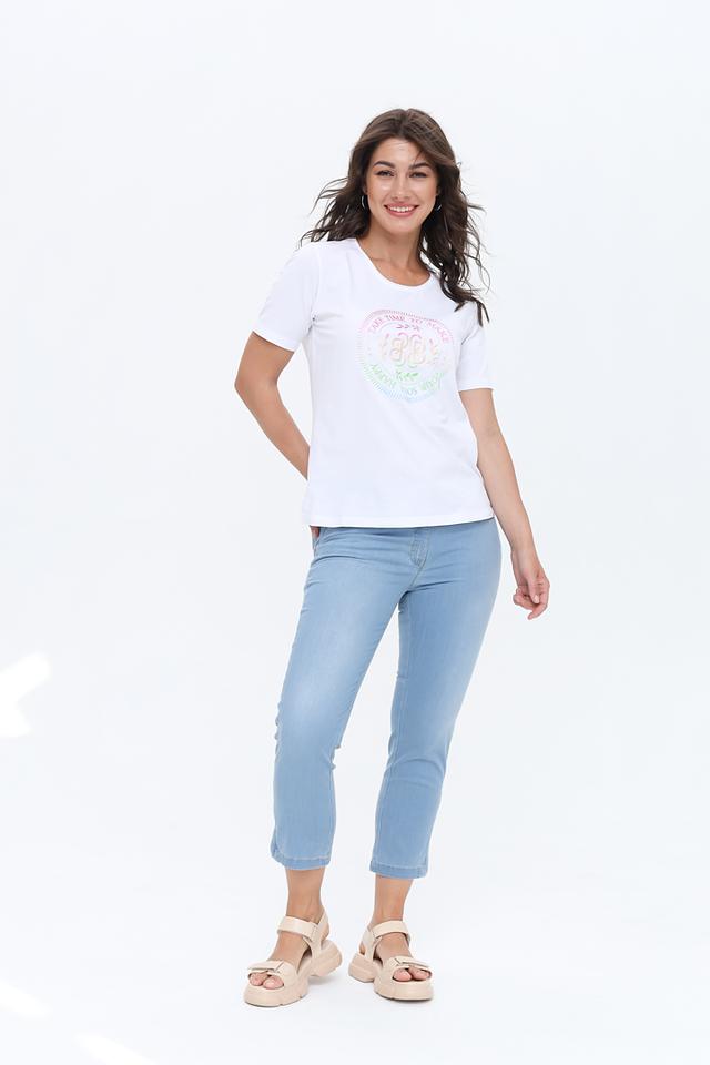 Классический светло-голубой цвет денима легко сочетается с различными элементами гардероба. Капри имеют стандартные карманы и аккуратный пояс. Застежка – молния и пуговица. Данная модель станет отличным выбором для повседневной носки и создания стильных образов.