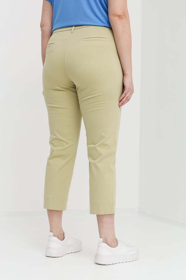 Женские капри Zerres хаки – стильная и удобная модель с прямым кроем и классической посадкой. Изготовлены из мягкой ткани с добавлением хлопка, модала и эластана, обеспечивающих комфорт в носке и хорошую посадку по фигуре. Состав: хлопок 56%, модал 41%, эластан 3%