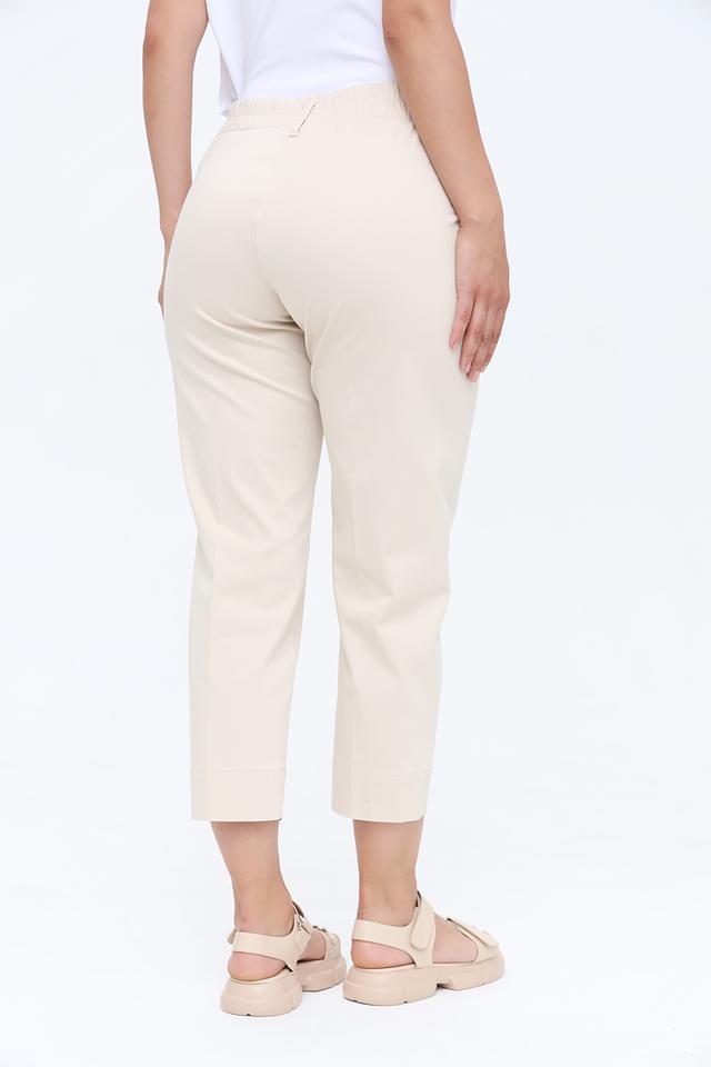 Модель имеет классический крой с зауженным силуэтом к низу, что визуально удлиняет ноги. Капри оснащены удобным эластичным поясом и боковыми карманами.