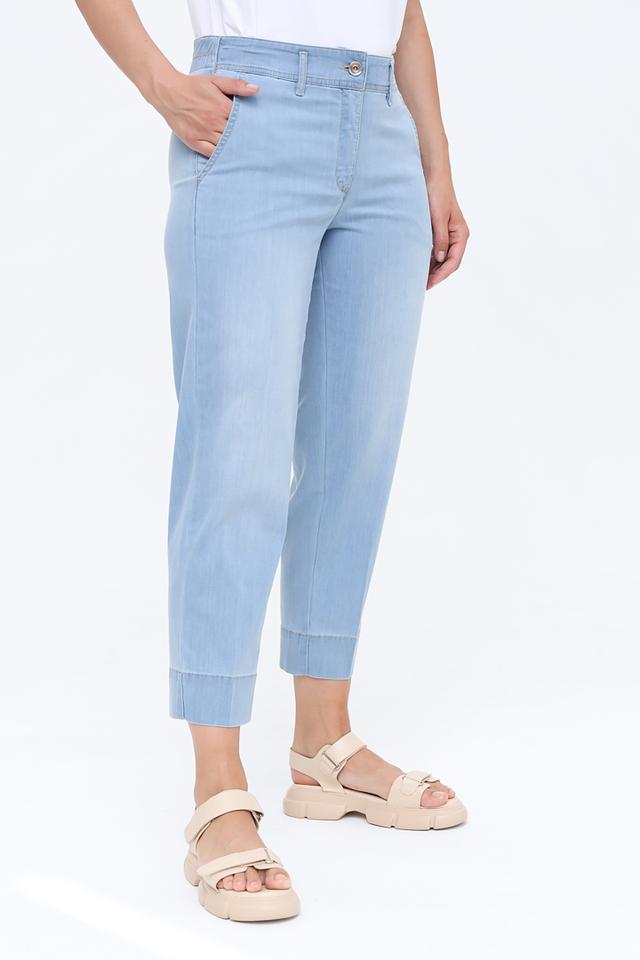 Женские капри Zerres голубого цвета – стильное и комфортное решение для повседневного гардероба. Модель выполнена из мягкой ткани с добавлением эластана, обеспечивающего свободу движений. Удобный крой и лаконичный дизайн. Состав: лиоцел 46%, полиэстер 28%, хлопок 23%, эластан 3%