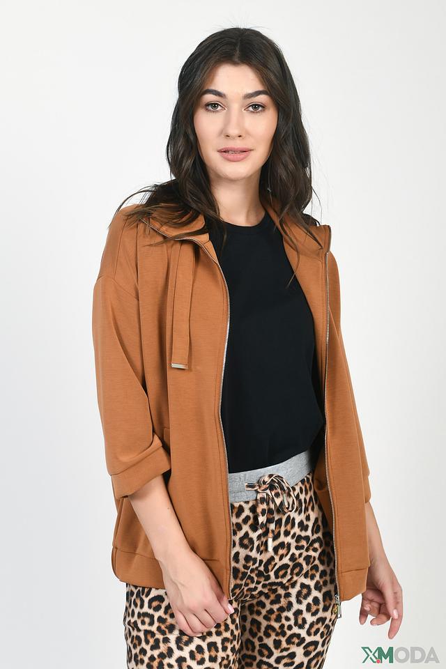 Жакет имеет удобную застёжку на молнию, а также капюшон со шнурком для регулировки. Свободный крой обеспечивает комфорт при носке, а рукава 3/4 делают его идеальным для тёплой погоды.