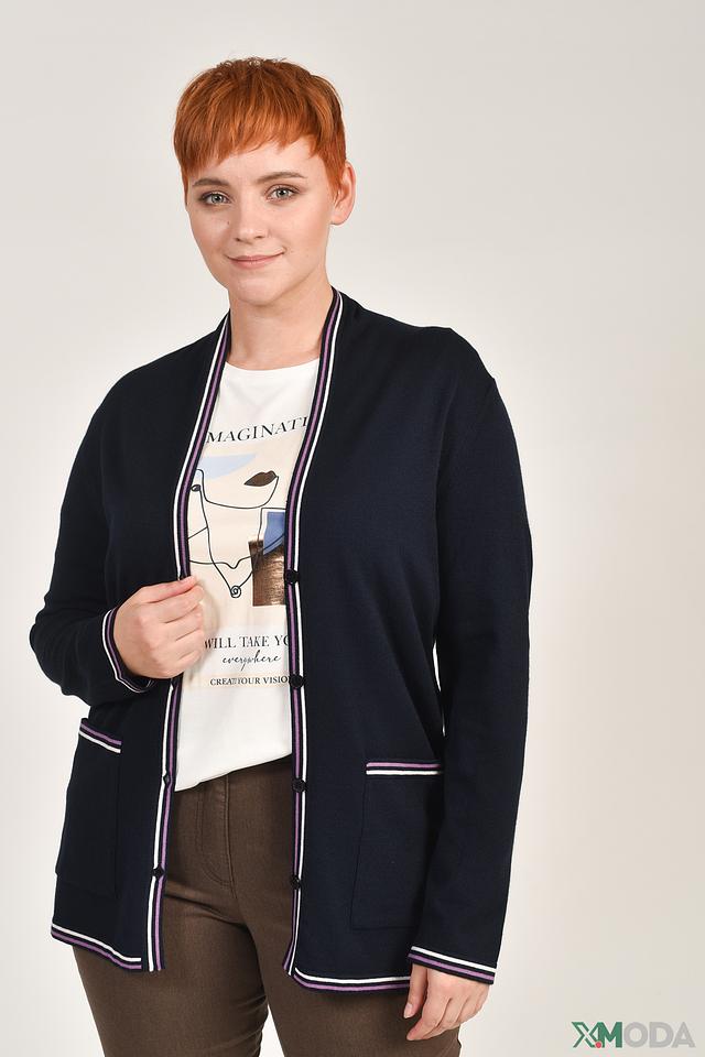 Жакет застегивается на пуговицы. Состав ткани включает модал, полиакрил и полиамид, что обеспечивает мягкость, приятные тактильные ощущения и долговечность изделия.
