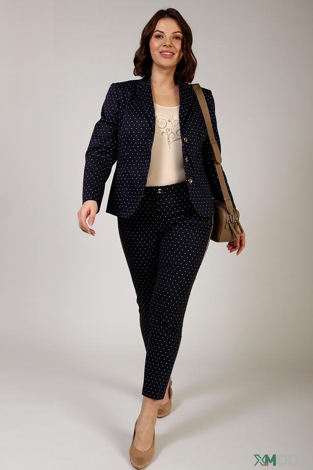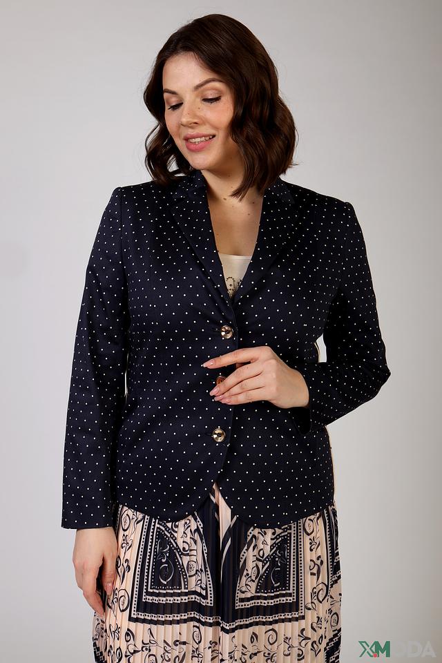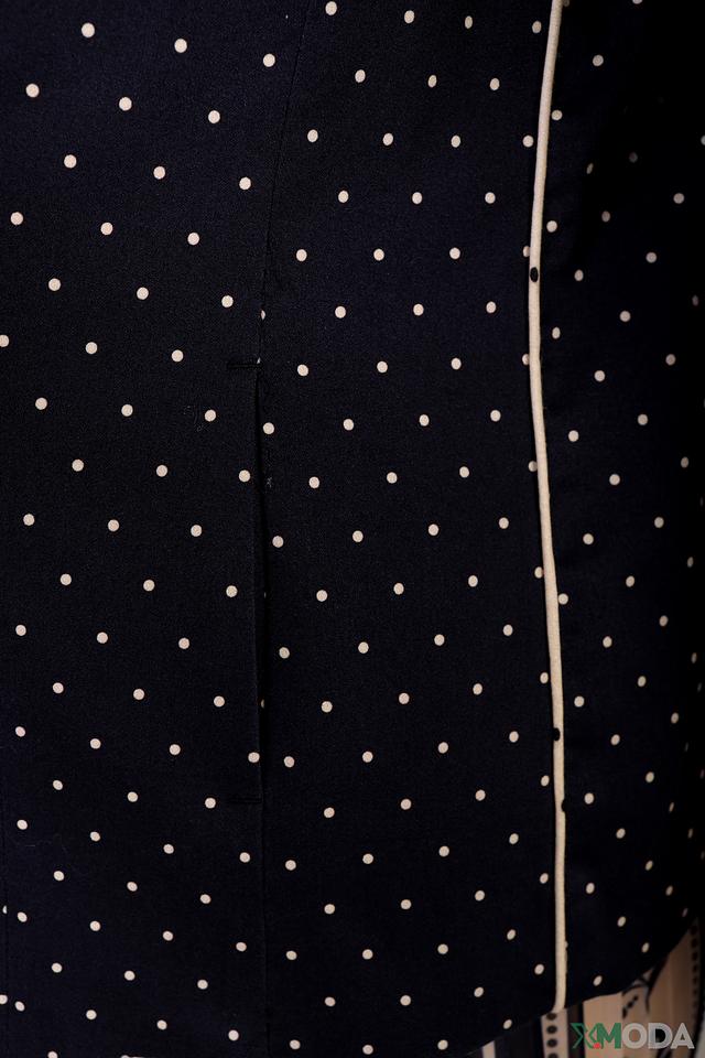 Темно-синий цвет с мелким белым горошком придает жакету элегантный и женственный вид. Застежка на три золотистые пуговицы добавляет изысканности. Подкладка выполнена из ацетата и вискозы, что обеспечивает приятные тактильные ощущения и хорошую посадку.