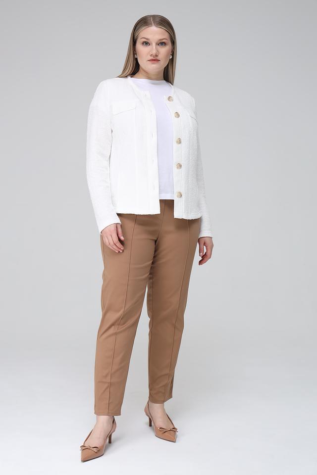 Состав: 51% полиэстер, 29% хлопок, 20% вискоза. Жакет приятен к телу, хорошо держит форму и прост в уходе. Этот жакет идеально сочетается с юбками, брюками и платьями, позволяя создавать как повседневные, так и более формальные образы.