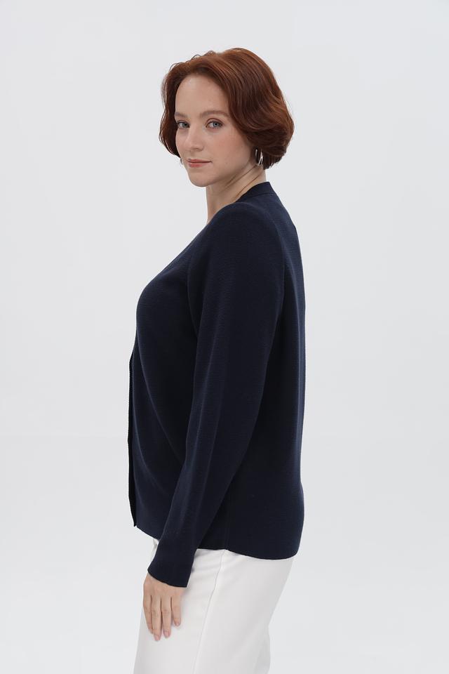 Представляем вашему вниманию вязаный жакет от бренда Frank Walder. Эта модель выполнена в классическом тёмно-синем цвете, который легко сочетается с различными предметами гардероба.