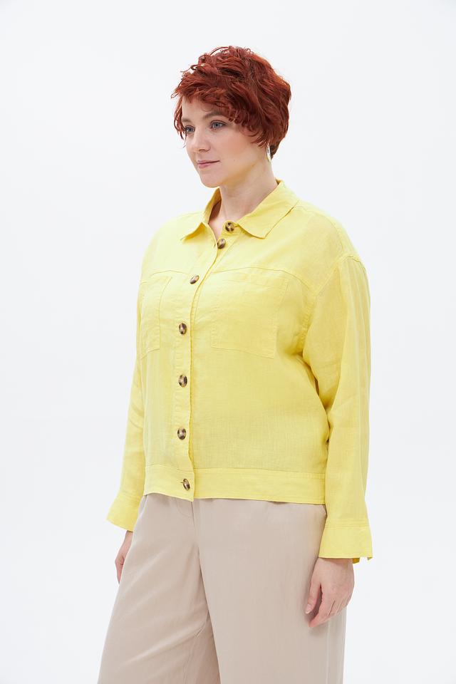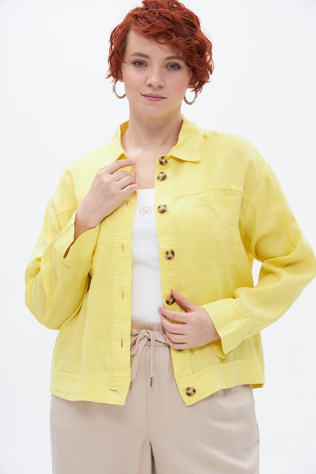 Жёлтый жакет от Lebek из 100% льна – стильное и комфортное решение для создания модных образов. Прямой крой и застёжка на пуговицы делают его универсальным элементом гардероба. Состав: лен 100%