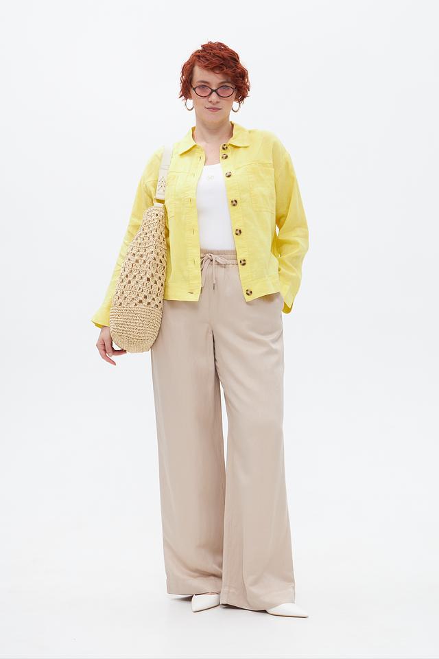 Этот жакет от Lebek выполнен из 100% льна, что обеспечивает комфорт и воздухопроницаемость в тёплую погоду. Жёлтый цвет придает образу свежесть и яркость.