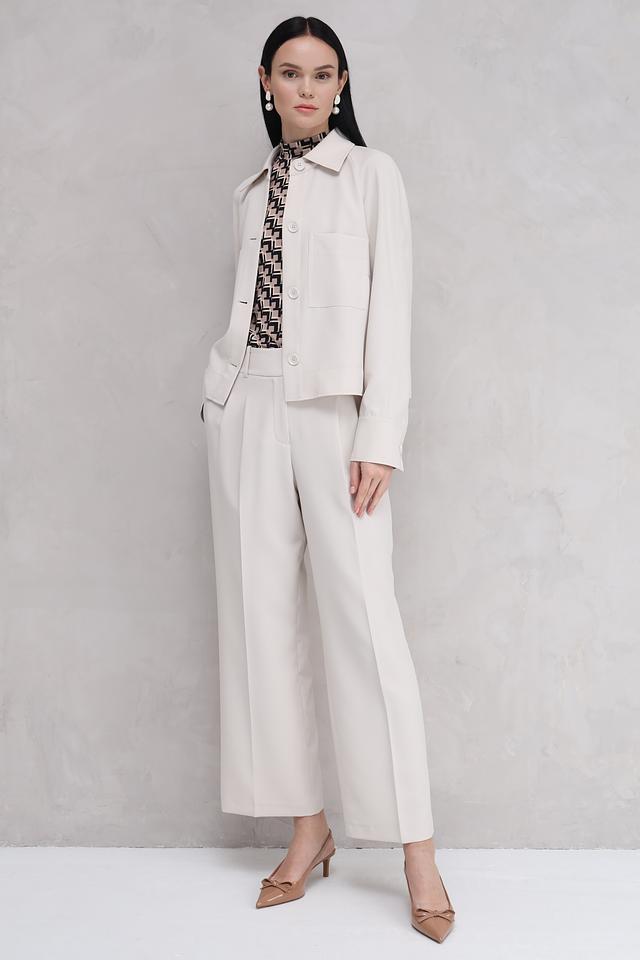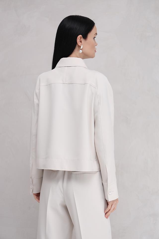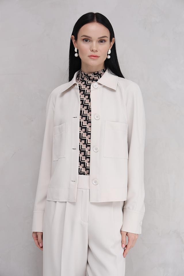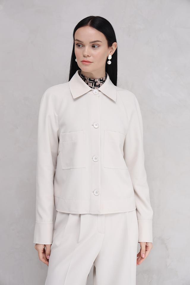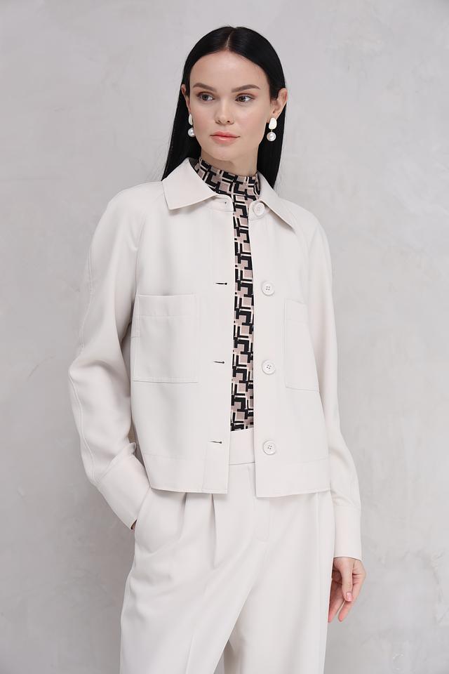 Жакет застегивается на ряд пуговиц в тон ткани, что позволяет регулировать степень прилегания. Накладные карманы добавляют практичности и функциональности. Изготовленный из полиэстера с добавлением эластана, жакет приятен на ощупь и хорошо держит форму.