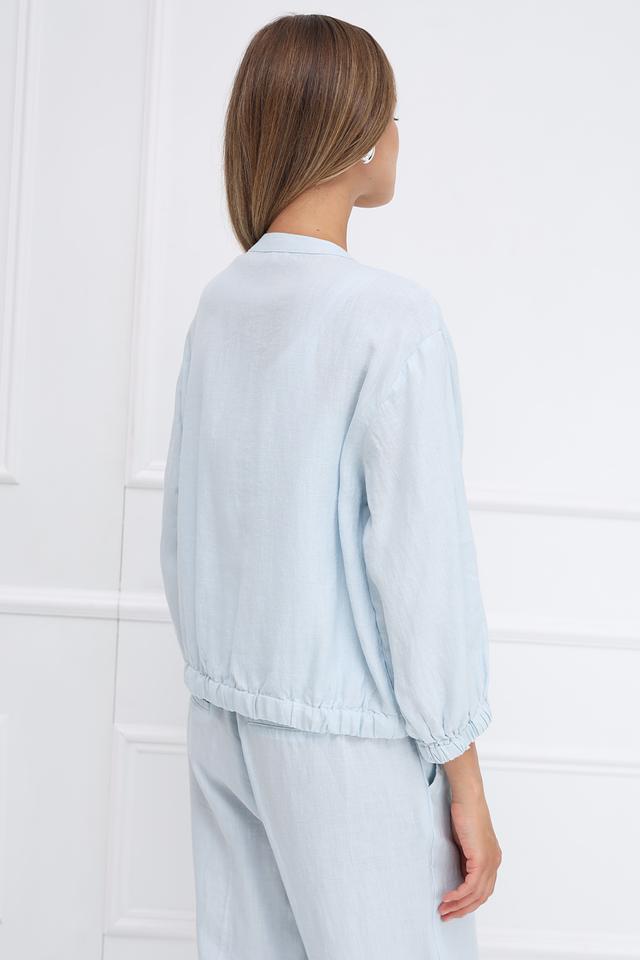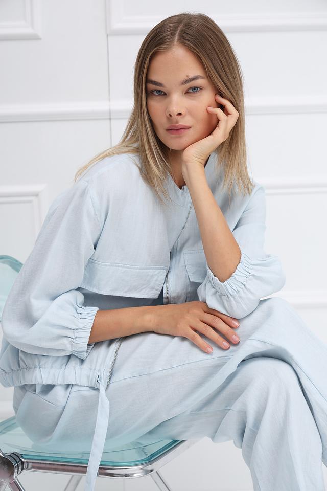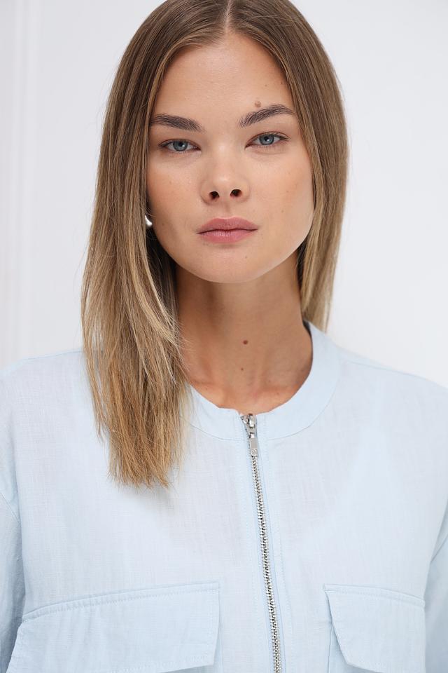 Жакет Monari голубого цвета выполнен из 100% льна. Лёгкий и стильный жакет на молнии с карманами и рукавами 3/4 станет отличным дополнением к вашему образу. Подходит для создания повседневных и летних образов. Состав: лен 100%