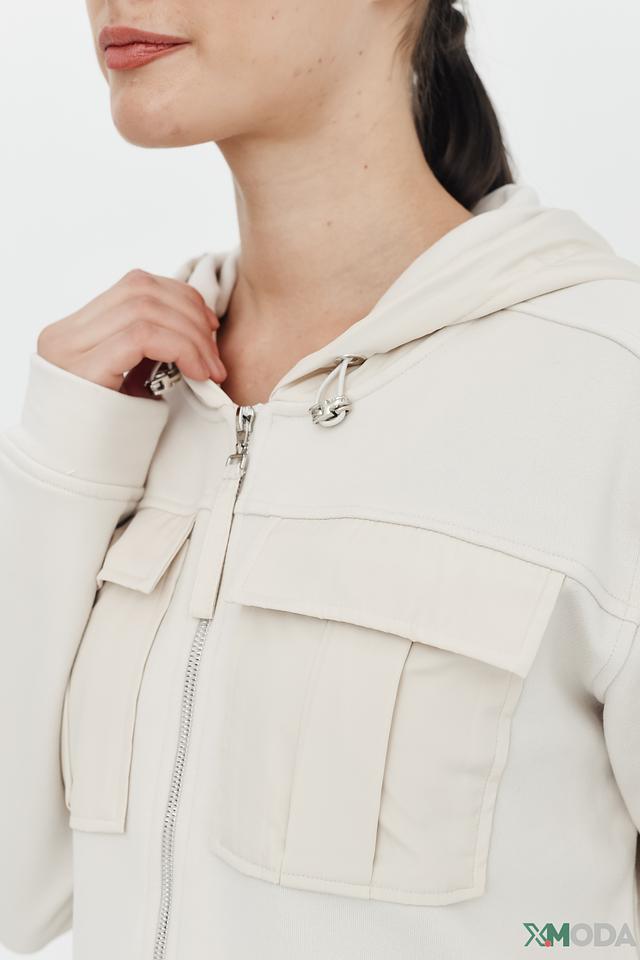 Бежевый жакет Monari – это стильная и удобная модель с капюшоном и накладными карманами. Жакет выполнен из мягкого хлопка с добавлением полиэстера, что обеспечивает комфорт и практичность в носке. Состав: хлопок 85%, полиэстер 15%