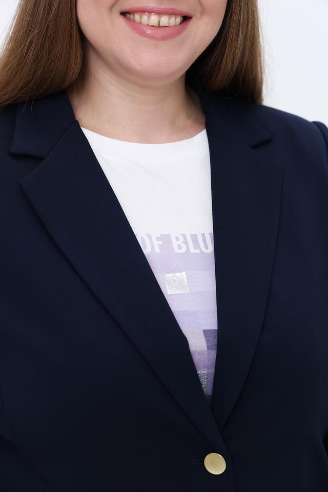 Этот жакет от Olsen станет незаменимой вещью в вашем гардеробе. Классический темно-синий цвет позволяет сочетать его с различными предметами одежды, создавая как деловые, так и повседневные образы.