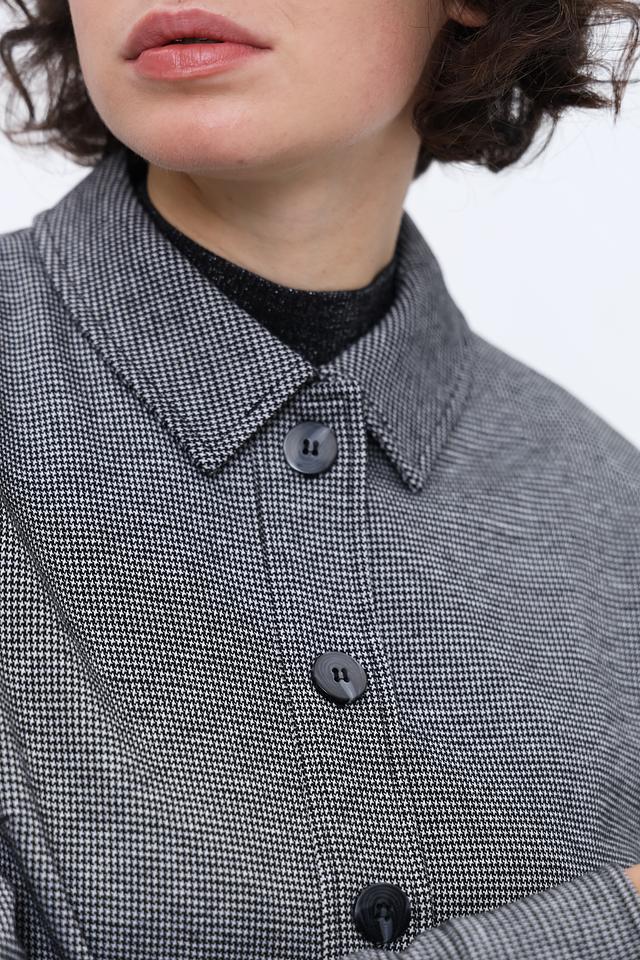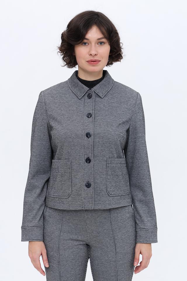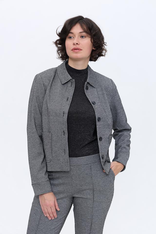 Этот жакет от Olsen – идеальный выбор для создания элегантного и современного образа. Жакет выполнен в серой цветовой гамме с классическим клетчатым принтом, который придает ему особый шарм.