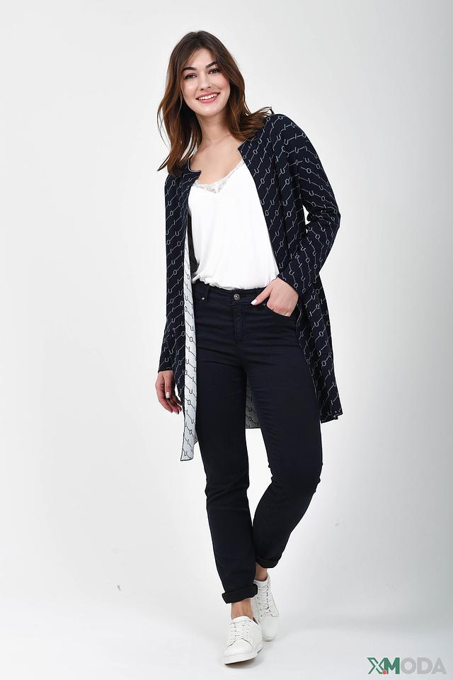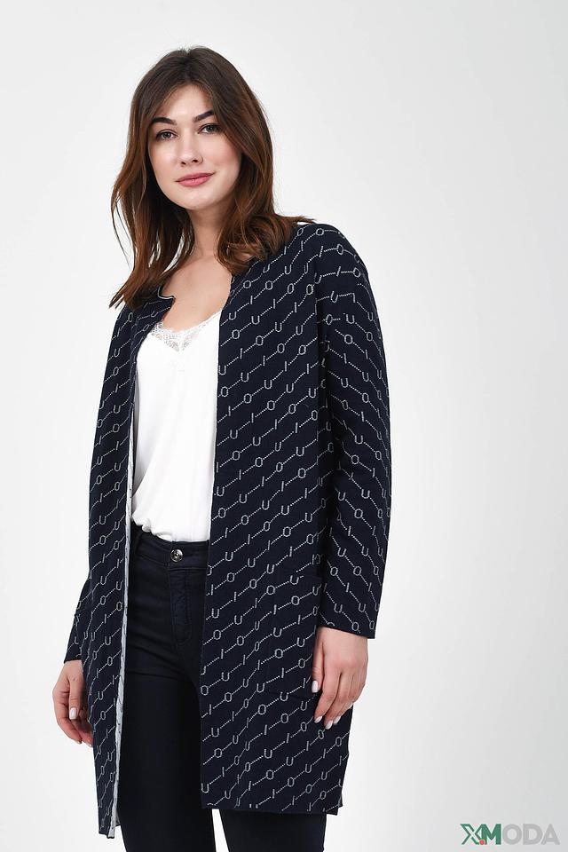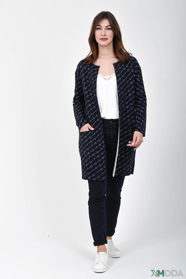 Этот жакет от Oui – идеальный выбор для создания комфортного и стильного образа. Жакет выполнен в черном цвете и украшен повторяющимся геометрическим принтом белого цвета, что придает ему современный вид.
