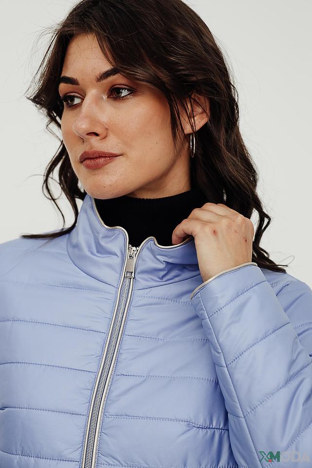 Модель имеет стеганую фактуру, которая придает ей современный вид. Застежка – молния, расположенная по центру, а также две дополнительные молнии на карманах. Высокий воротник-стойка защищает от ветра.