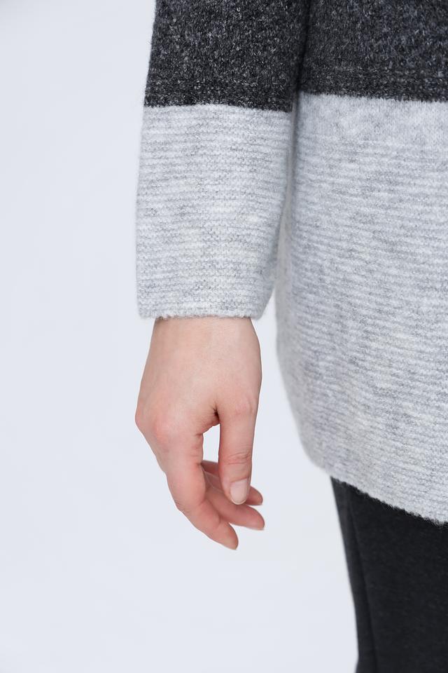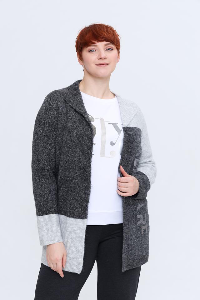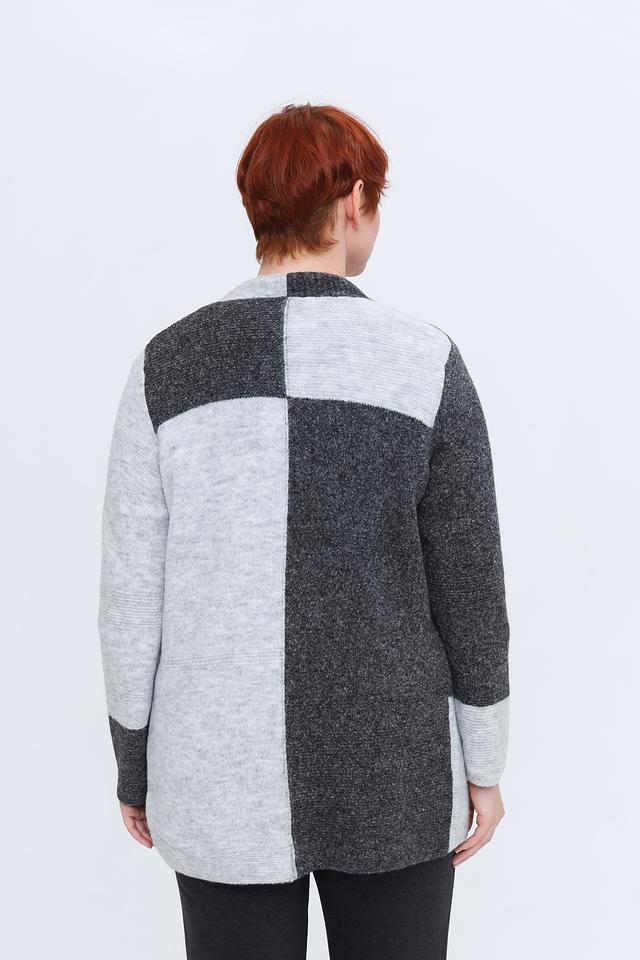 Этот жакет от Rabe collection станет отличным дополнением к вашему гардеробу. Модель выполнена в серой цветовой гамме с контрастными вставками, создающими эффектный цветовой блок.
