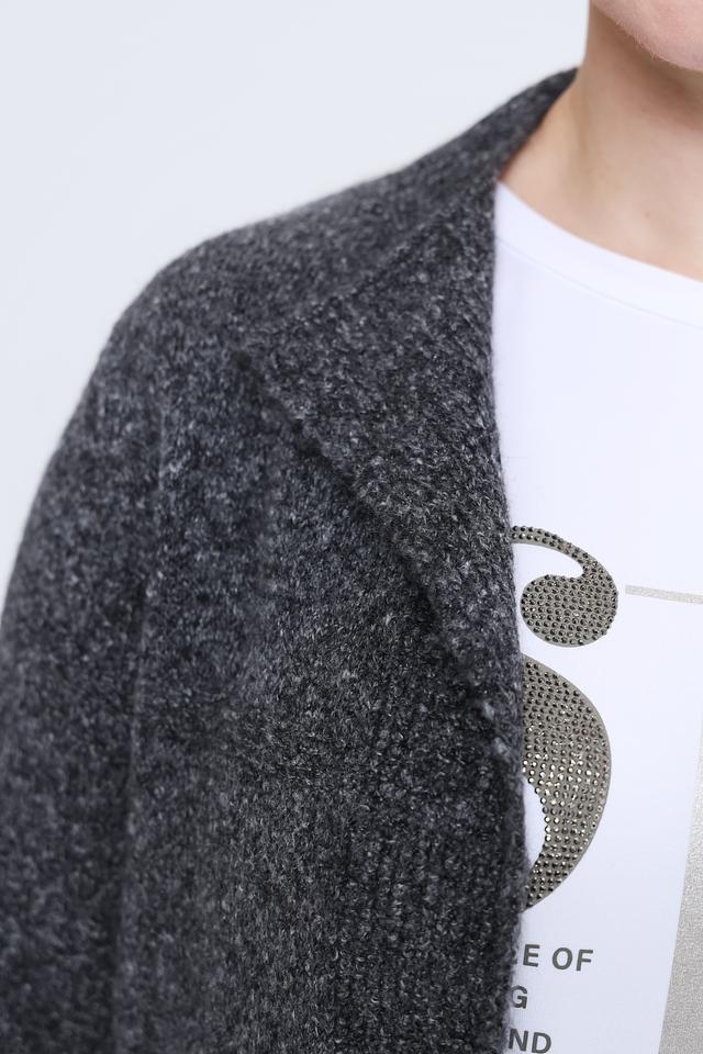 Жакет имеет свободный крой, который не сковывает движений, и удобный капюшон. Изготовлен из мягкого и приятного на ощупь трикотажа, в составе которого полиакрил, полиамид, хлопок, шерсть, модал и эластан.