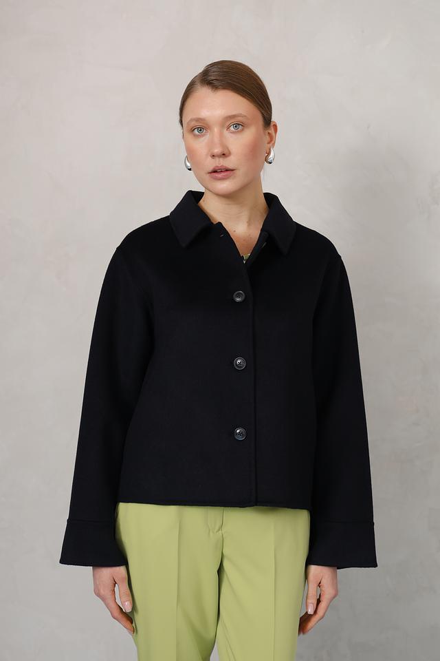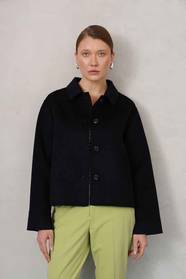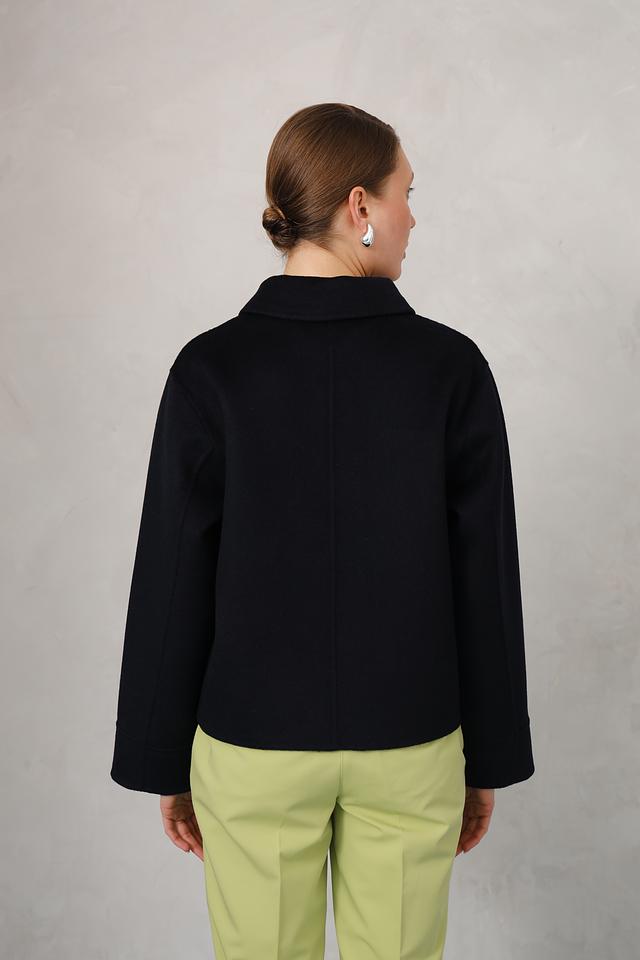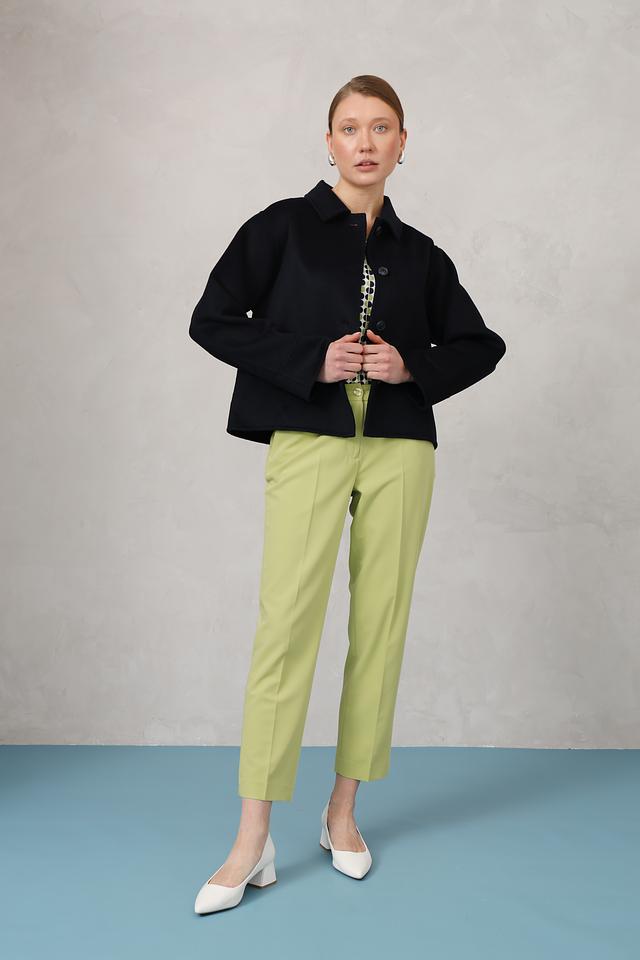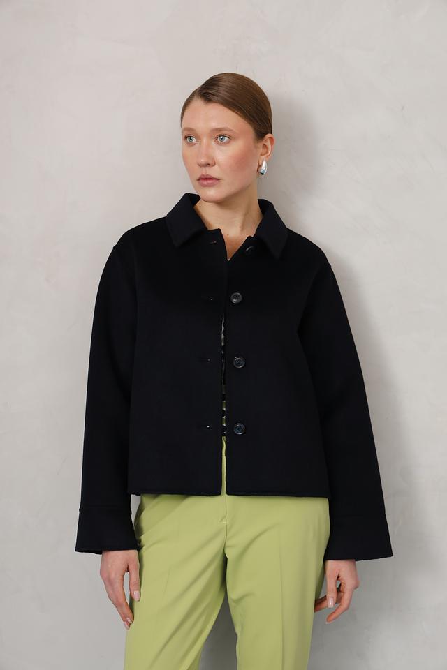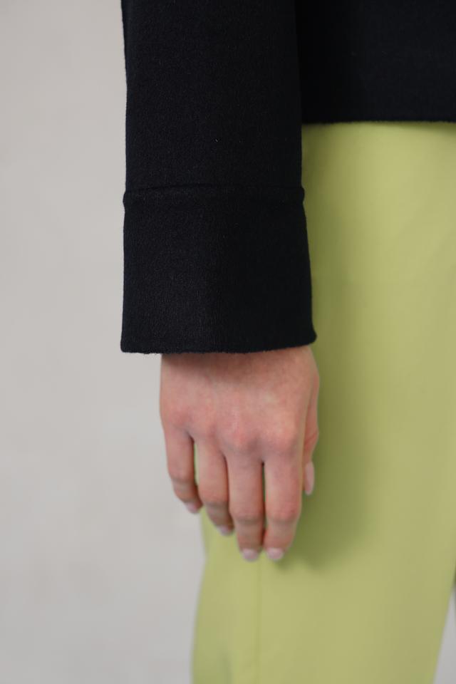 Жакет имеет прямой крой, воротник и застёжку на пуговицы. Изготовлен из качественной ткани, в составе которой 70% шерсть и 30% полиэстер. Шерсть обеспечивает тепло и комфорт, а полиэстер – износостойкость и простоту в уходе.