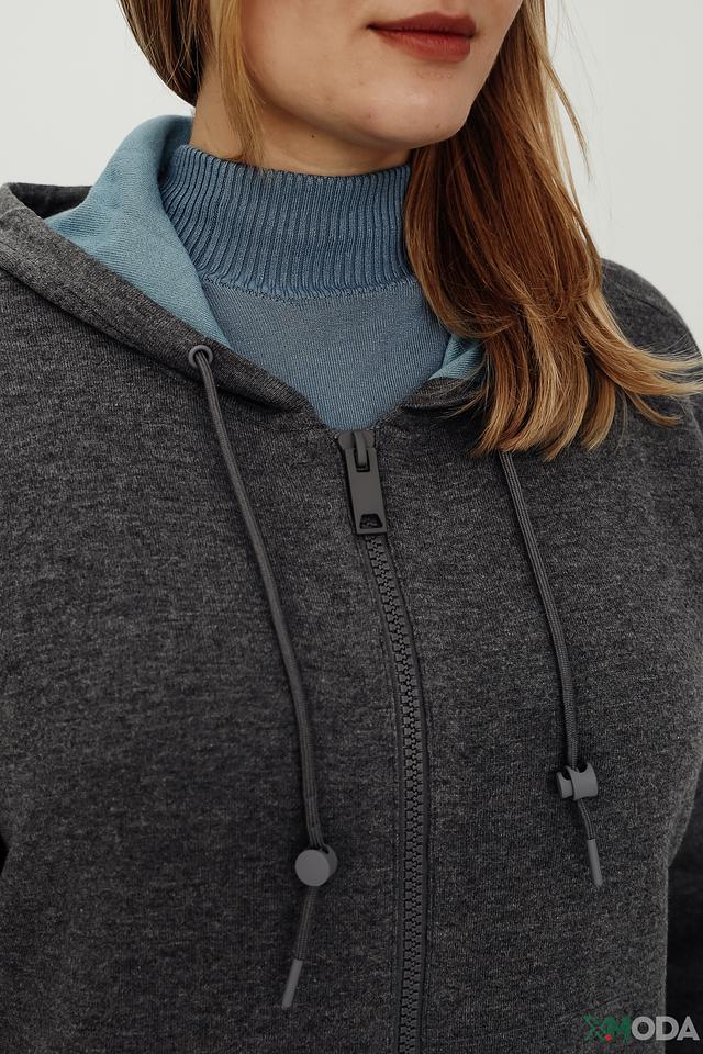Жакет имеет удобный капюшон и застегивается на молнию, что позволяет регулировать степень тепла и комфорта. Длинный крой обеспечивает дополнительное покрытие, а свободный силуэт не сковывает движений.