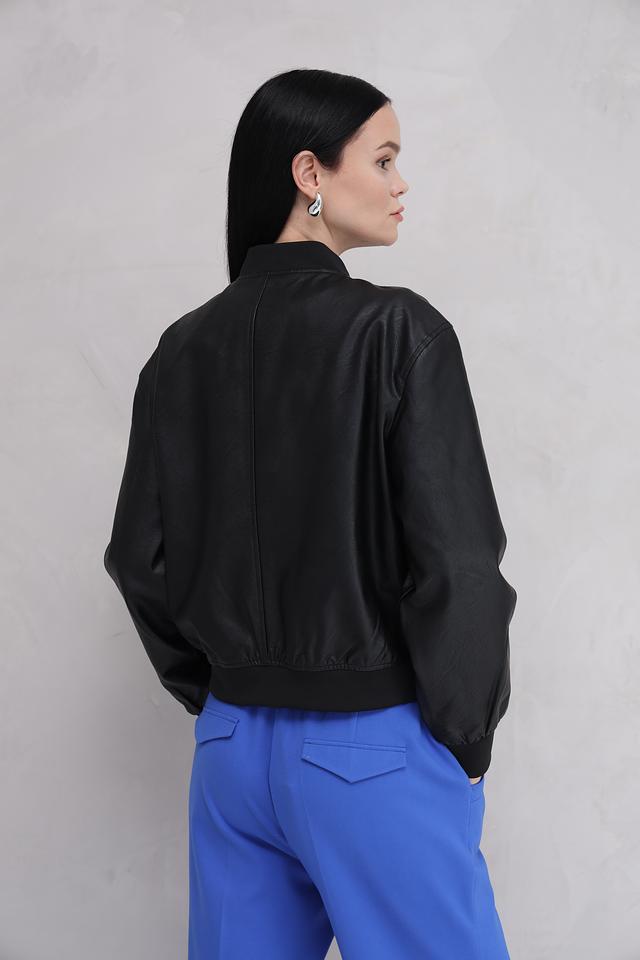 Жакет имеет прямой крой и длину до бедер, что делает его универсальным для различных образов. Застёжка на молнии обеспечивает удобство и практичность. Эластичные манжеты и нижний край жакета обеспечивают комфортную посадку по фигуре.