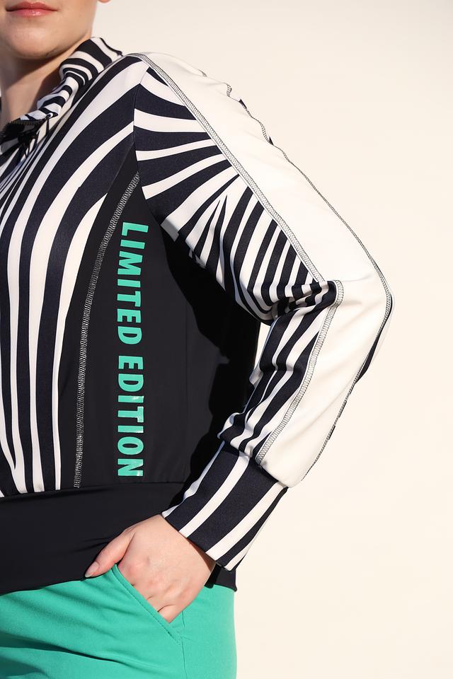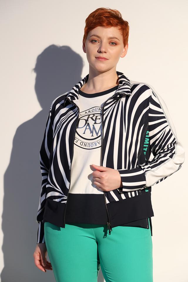 Женский жакет Tuzzi чёрно-белой расцветки с застёжкой-молнией станет стильным дополнением к вашему гардеробу. Модель выполнена из полиэстера с добавлением эластана, что обеспечивает комфорт и удобство в носке. Состав: полиэстер 94%, эластан 6%