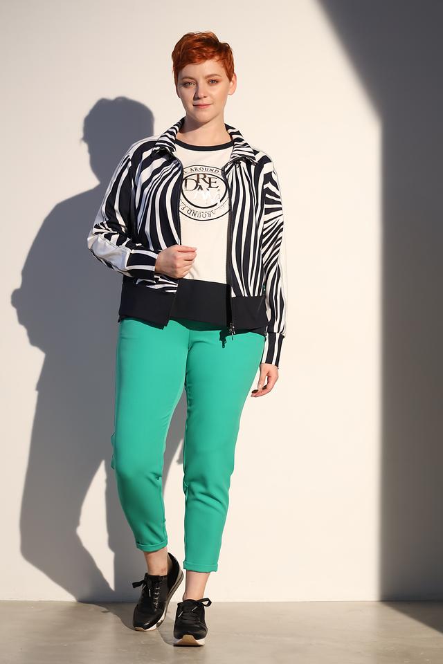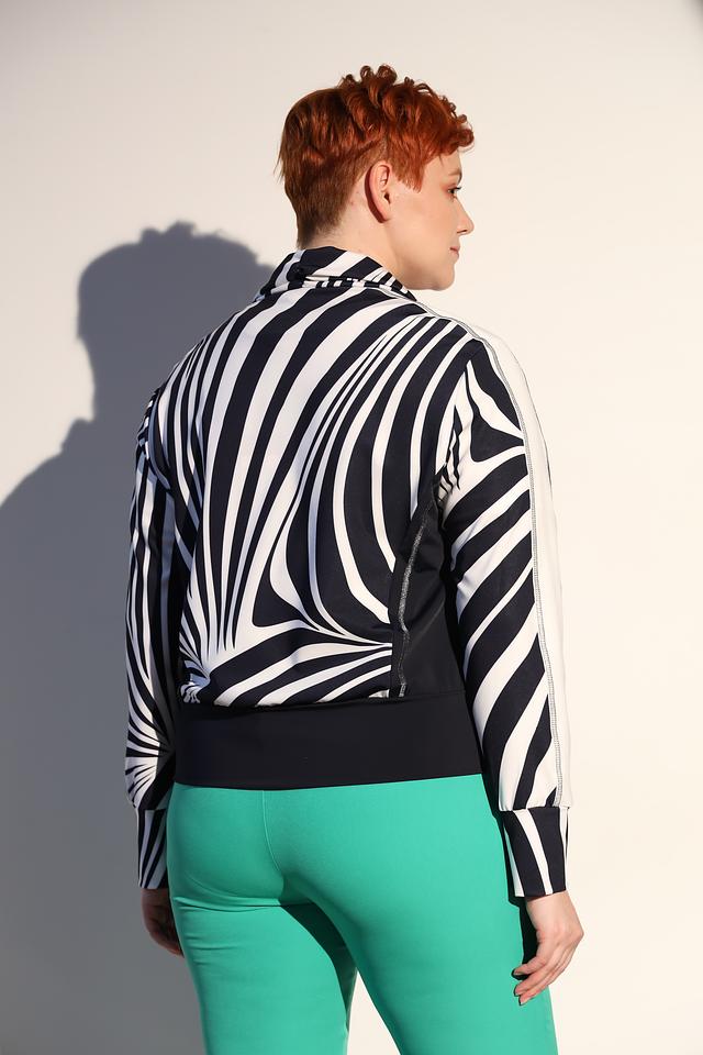 Жакет имеет удобную застежку-молнию, воротник-стойку и длинные рукава. Сочетание полиэстера и эластана обеспечивает комфортную посадку по фигуре и легкость в уходе.