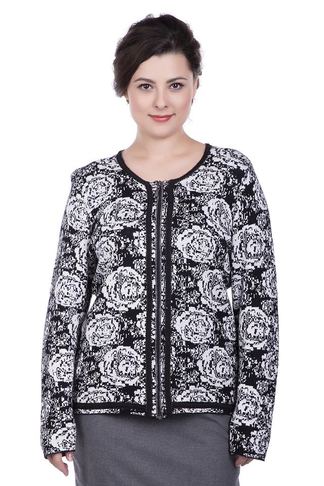 Жакет Via Appia чёрно-белого цвета с оригинальным цветочным принтом и застёжкой на молнию. Модель с длинными рукавами и округлым вырезом горловины станет стильным дополнением к вашему гардеробу. Состав: вискоза 51%, хлопок 31%, шерсть 18%
