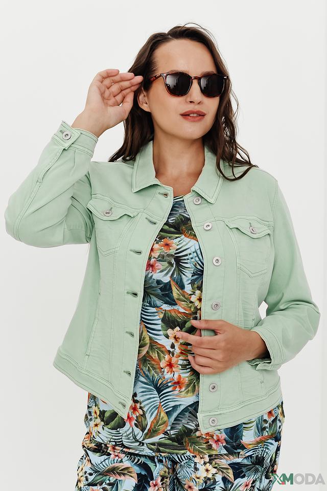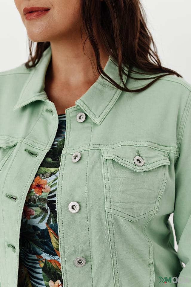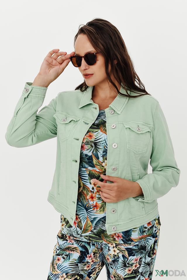 Жакет Via Appia мятного цвета – стильная и удобная модель в джинсовом стиле. Выполнен из мягкого хлопка с добавлением лиоцелла и эластана, обеспечивающих комфорт и свободу движений. Идеально дополнит повседневный образ. Состав: хлопок 55%, лиоцел 43%, эластан 2%