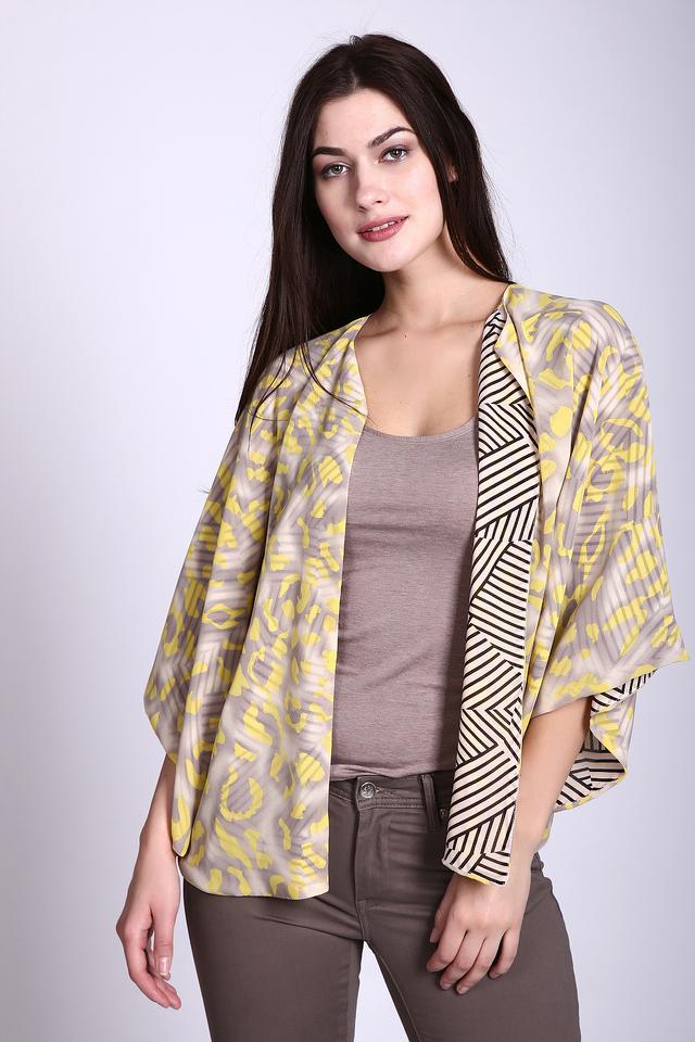 Жакет Via Appia жёлтого цвета с оригинальным геометрическим принтом станет ярким акцентом вашего образа. Легкий крой и короткие рукава делают его идеальным для теплой погоды. Изготовлен из 100% полиэстера. Состав: полиэстер 100%