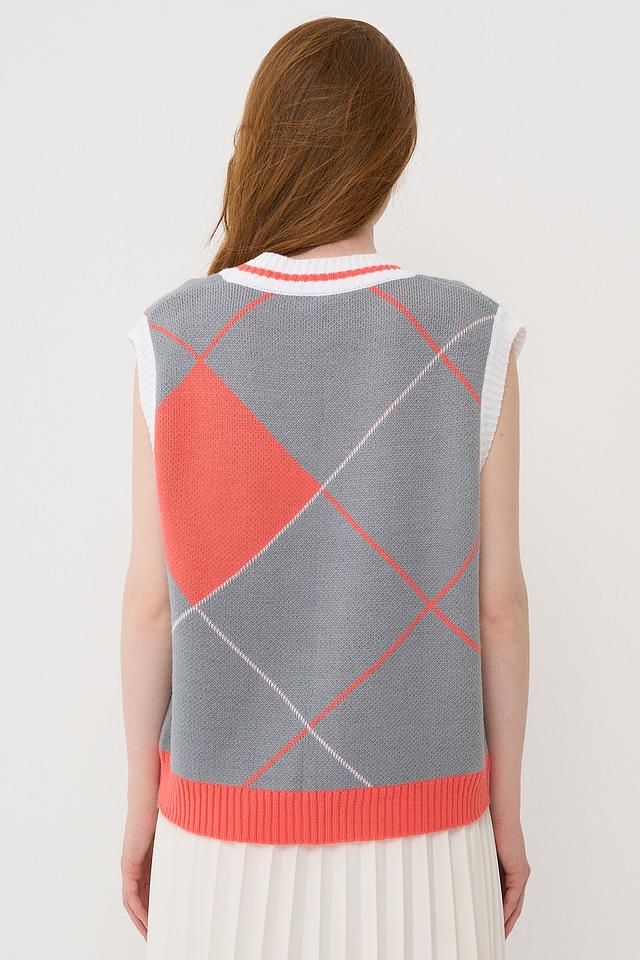 Этот вязаный жилет от бренда BE YOU станет ярким акцентом в вашем гардеробе. Модель выполнена в мультиколорной гамме с преобладающим серым цветом и выполнена в ромбовидном узоре.