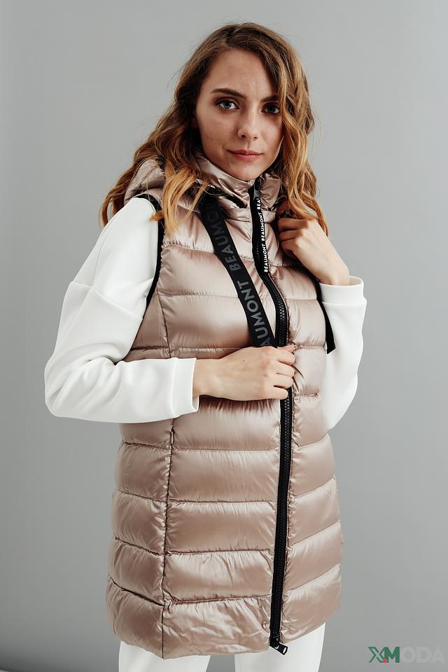 Бежевый цвет жилета универсален и легко сочетается с различными элементами одежды. Удобная молния позволяет быстро застегнуть и расстегнуть жилет, а капюшон обеспечивает дополнительную защиту от ветра и холода.