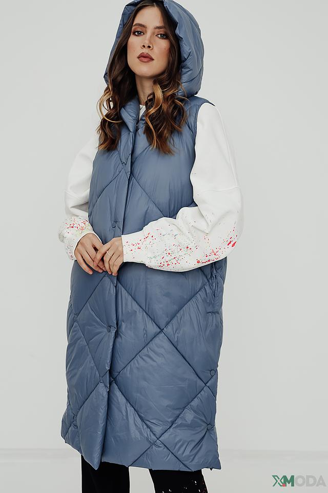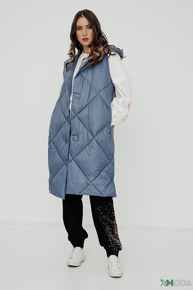 Модель имеет удлиненный крой, который позволяет создавать разнообразные образы, сочетая жилет с платьями, джинсами или брюками. Стеганая фактура придает изделию объем и оригинальность.