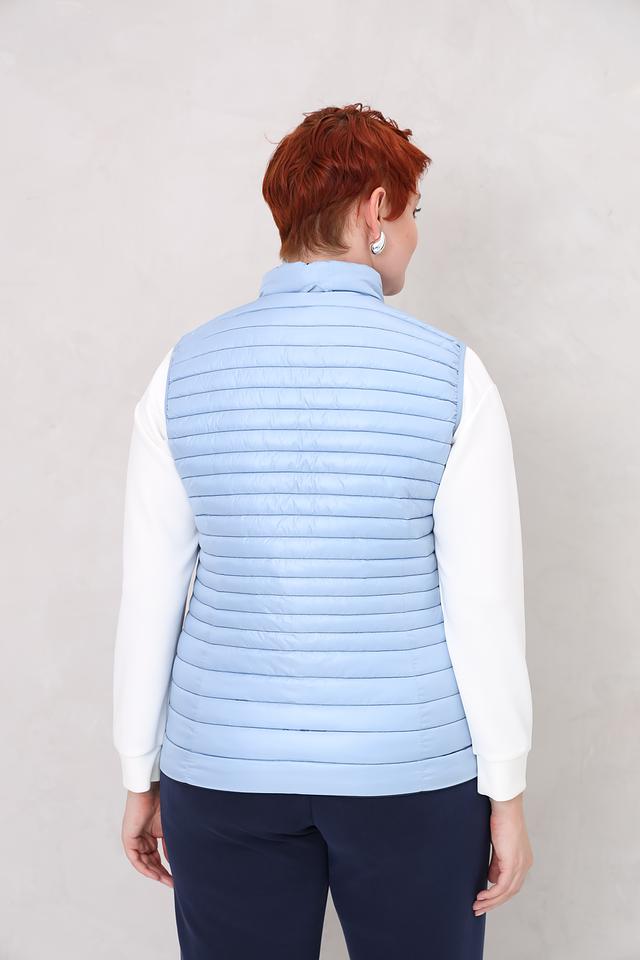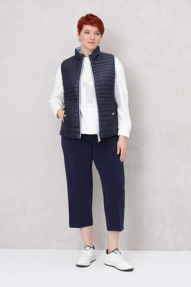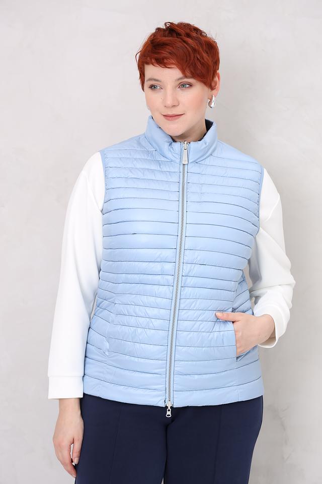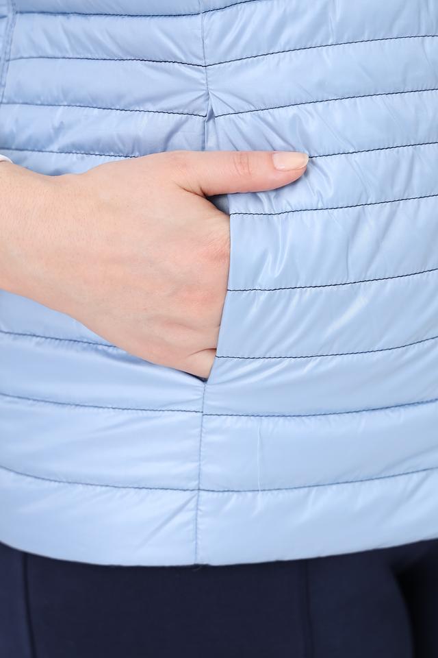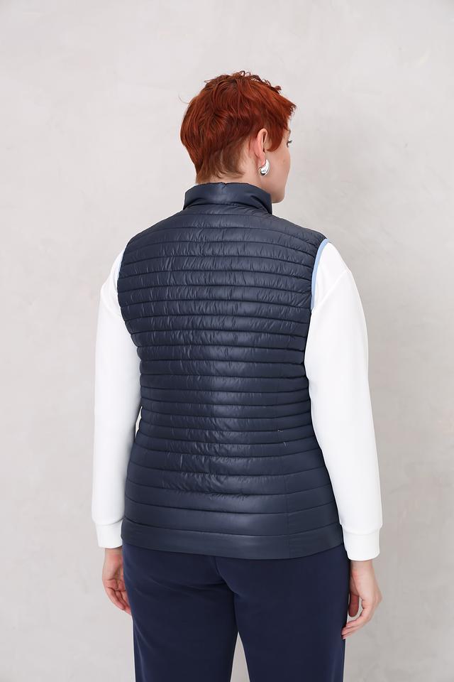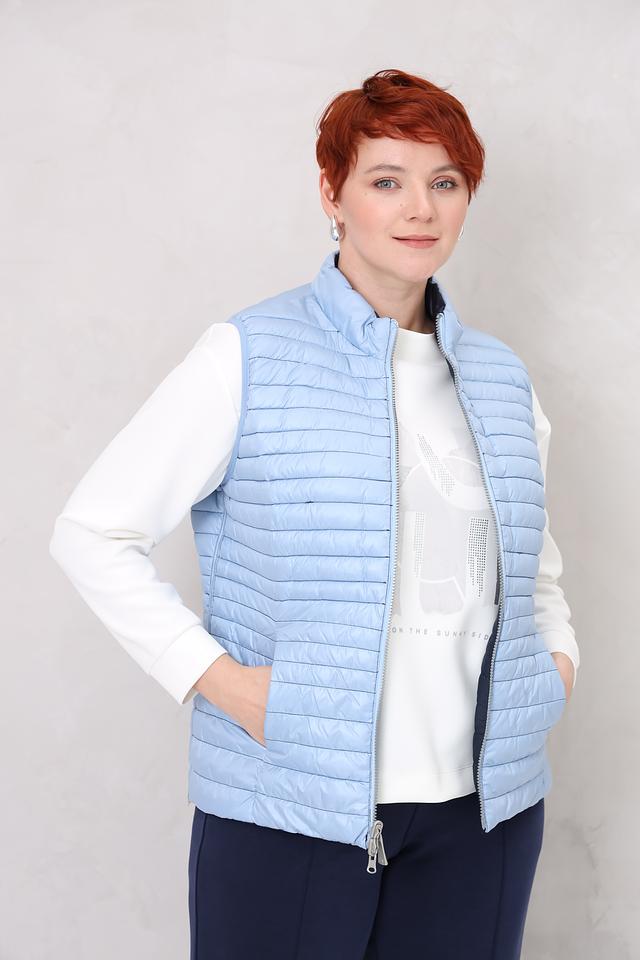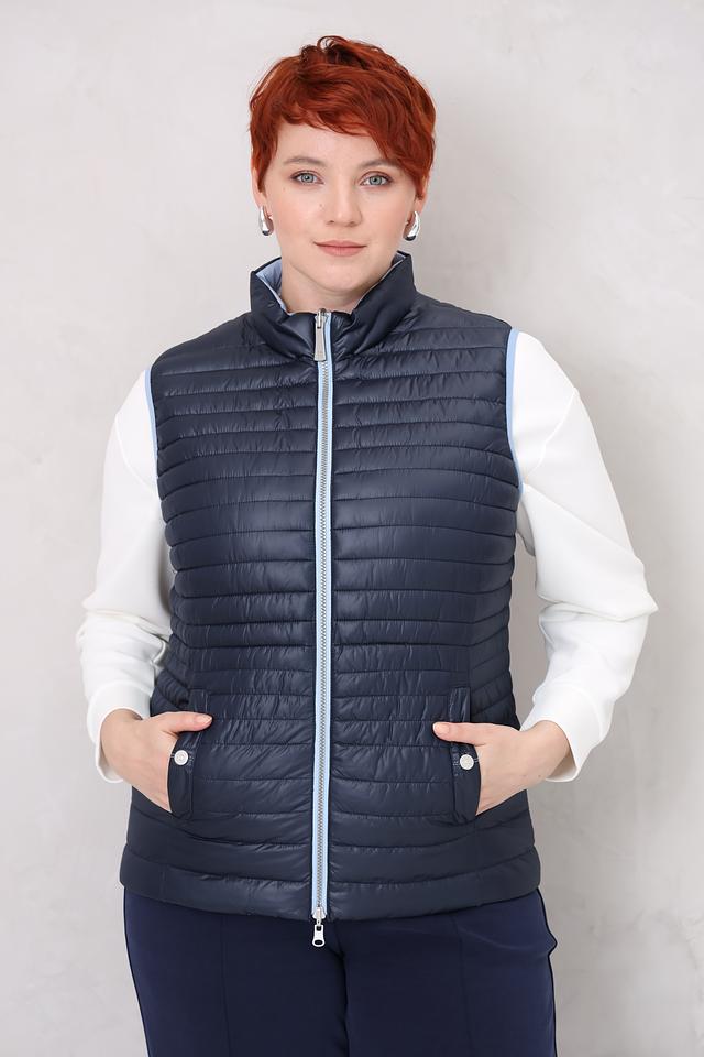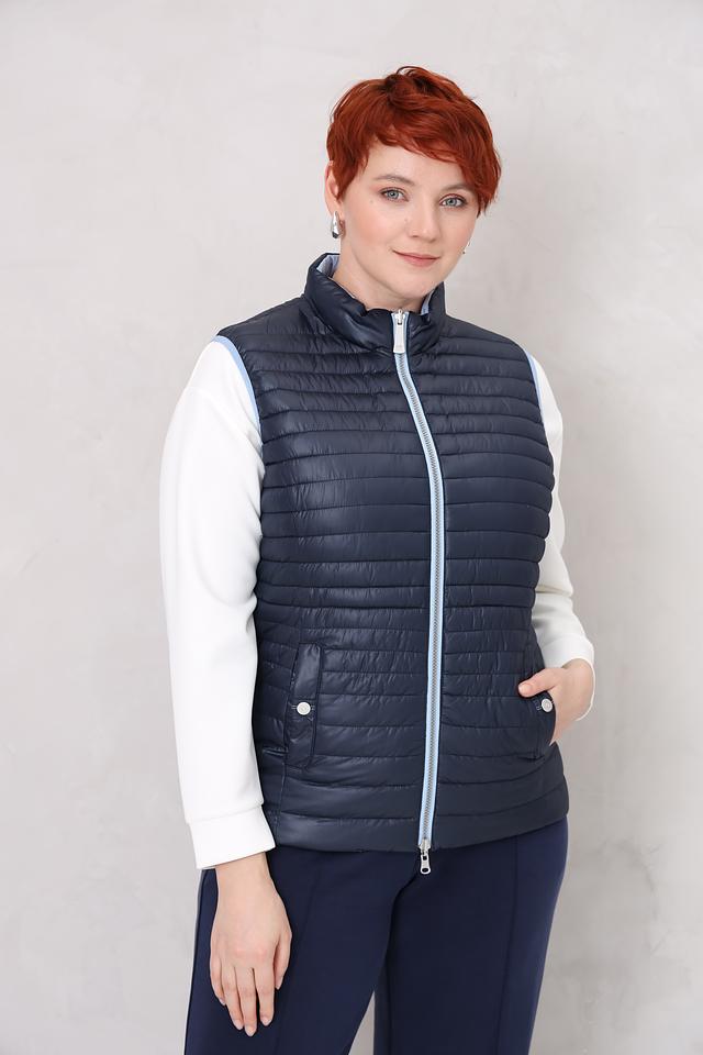 Синий цвет жилета легко сочетается с различными элементами одежды, позволяя создавать разнообразные стильные образы. Стеганая текстура придает изделию современный вид и подчеркивает его функциональность.