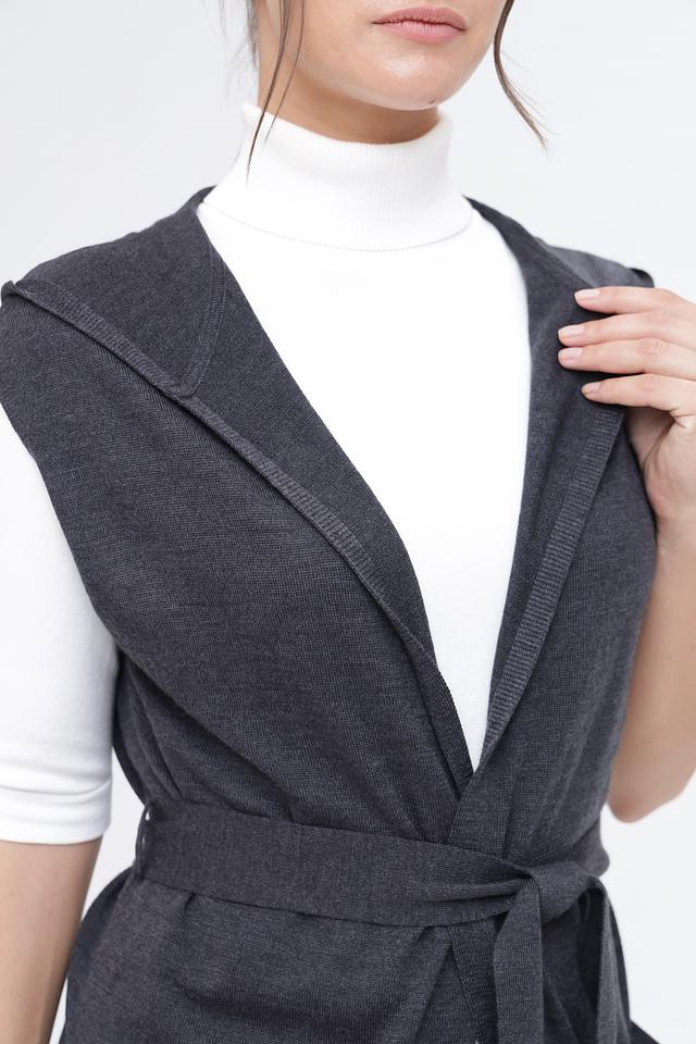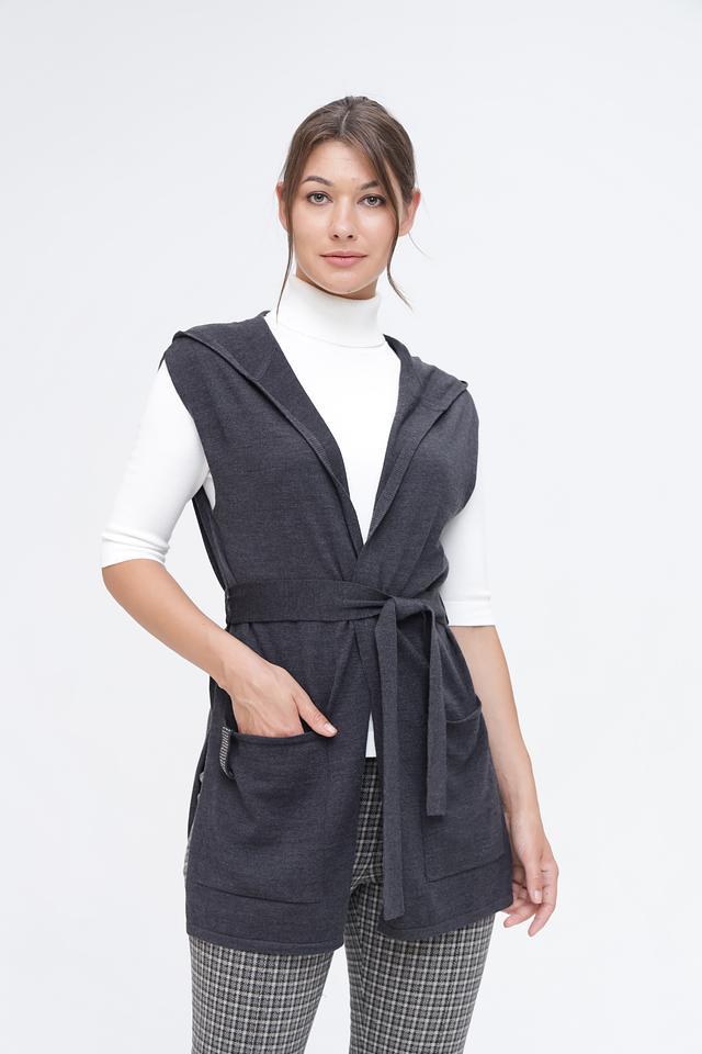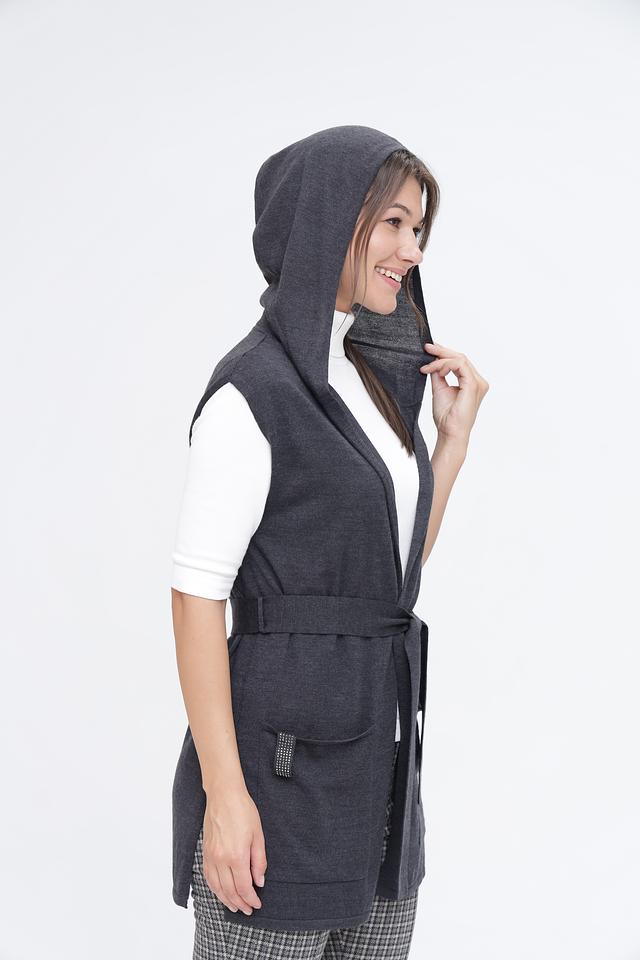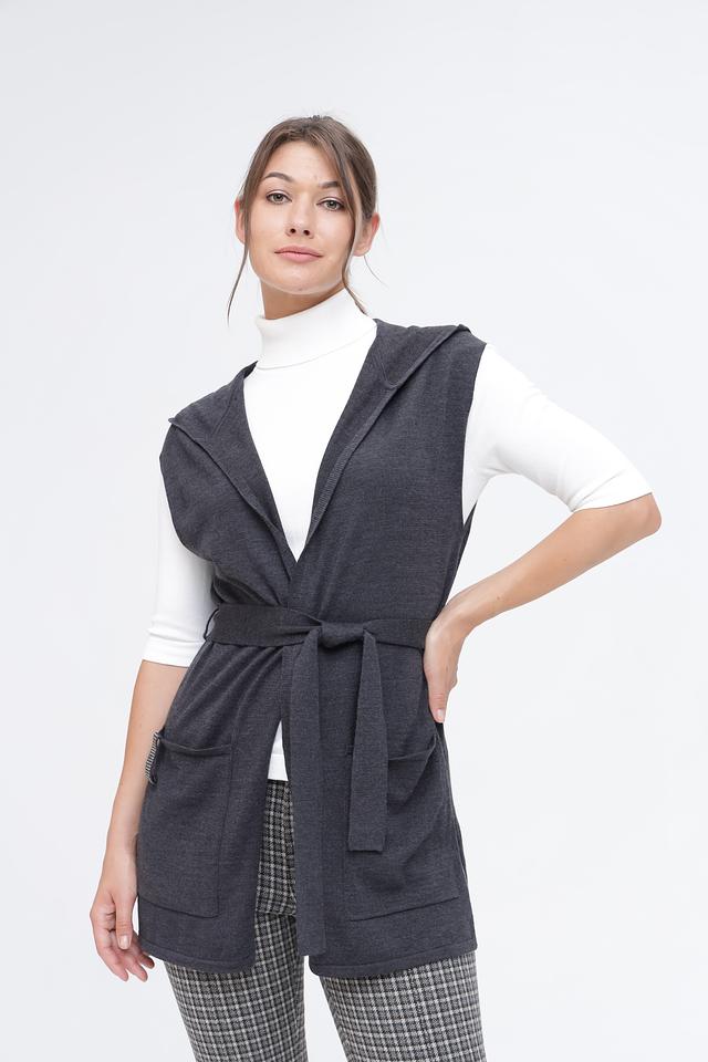 Серый жилет Pezzo с капюшоном и поясом – стильное и комфортное решение для создания многослойных образов. Изготовлен из мягкого трикотажа, который обеспечит тепло и уют в прохладную погоду. Состав: шерсть 50%, акрил 50%
