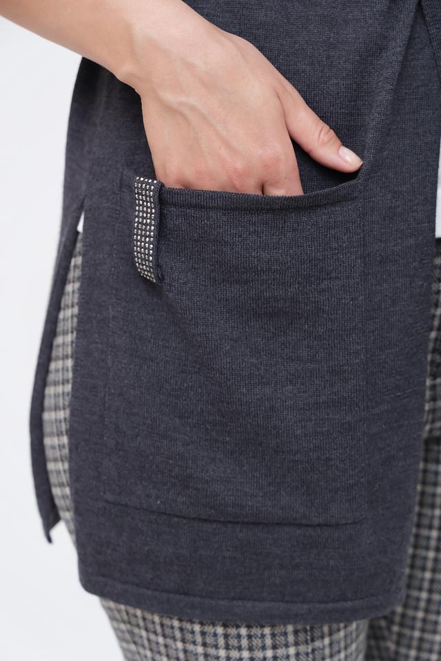Благодаря своему универсальному дизайну, этот жилет можно носить с джинсами, брюками, юбками и платьями. Он станет незаменимой вещью в вашем гардеробе в любое время года.