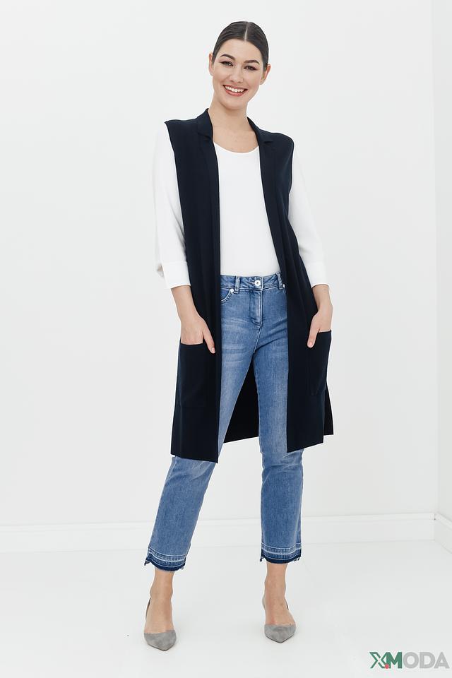 Этот жилет от Pezzo выполнен в тёмно-синем цвете и станет отличным дополнением к вашему гардеробу. Удлинённый крой визуально вытягивает силуэт, а отсутствие застёжки обеспечивает комфорт в носке.
