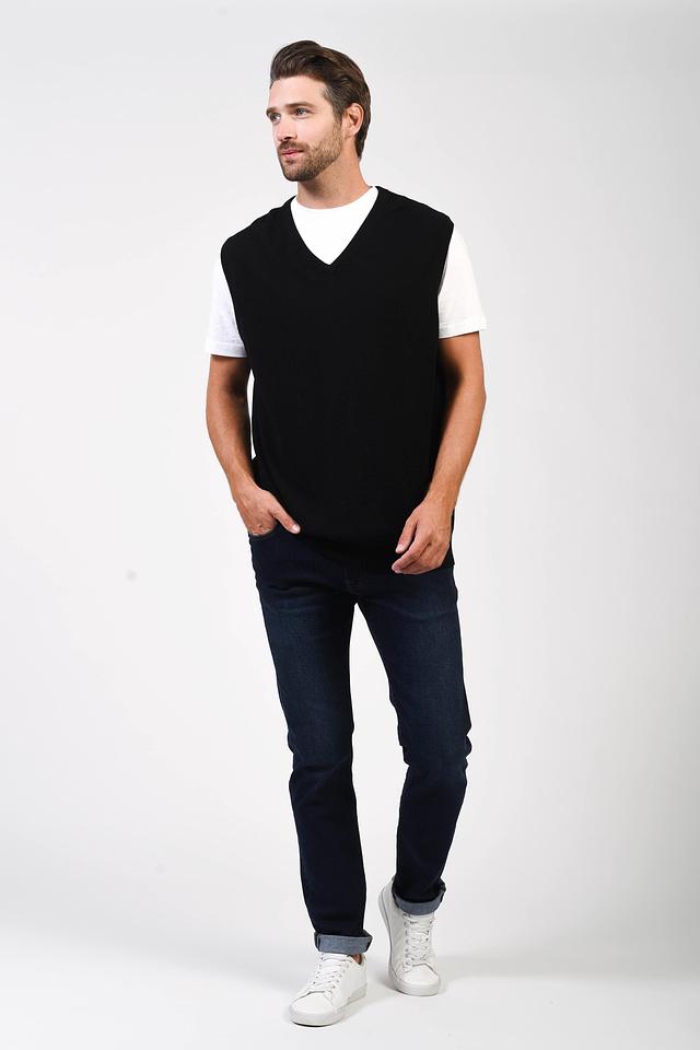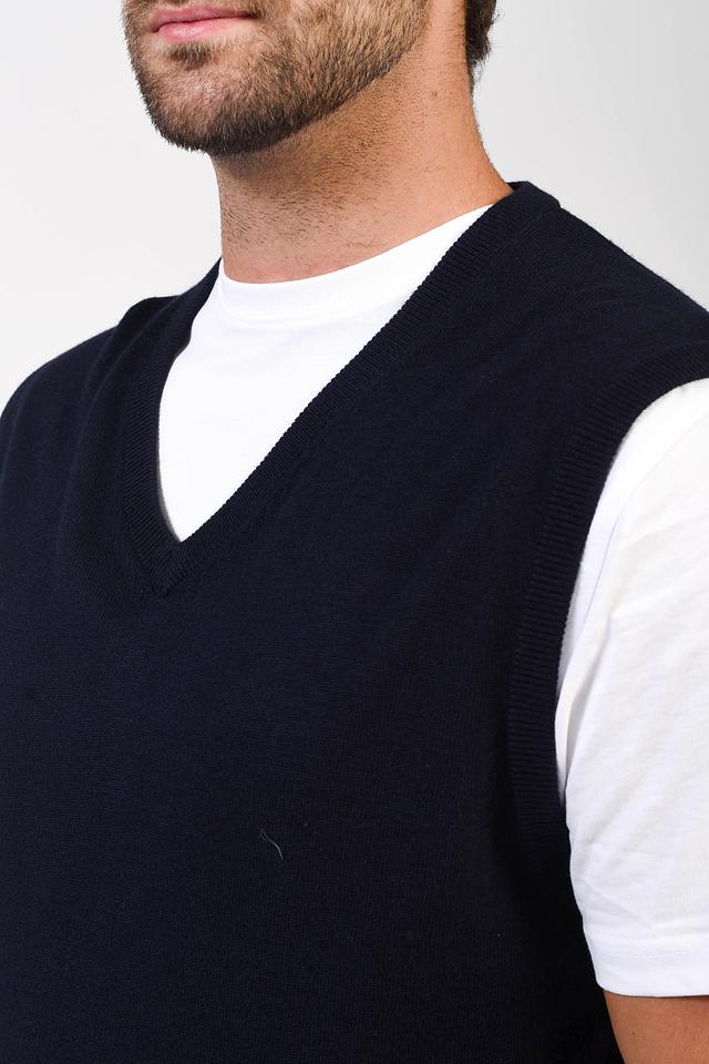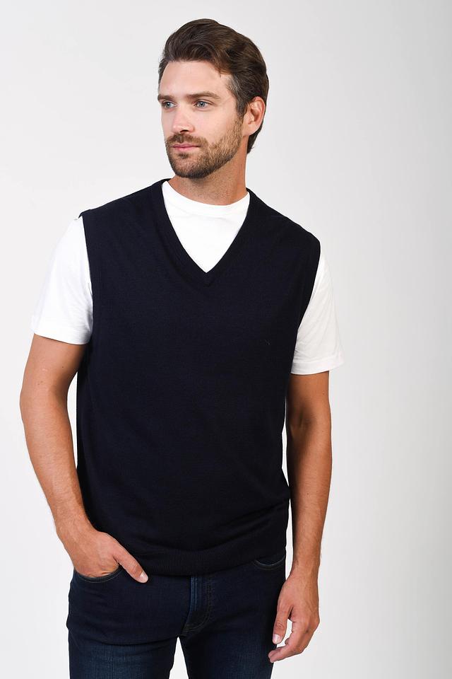 Мужской жилет Pezzo тёмно-синего цвета с V-образным вырезом – стильное и универсальное решение для создания многослойных образов. Изготовлен из мягкой и приятной к телу смеси вискозы, шерсти и полиамида. Состав: вискоза 55%, шерсть 23%, полиамид 22%