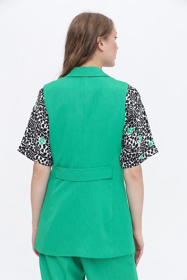 Этот жилет от Taifun станет ярким акцентом в вашем образе. Выполненный в насыщенном изумрудном цвете, он привлекает внимание и подчеркивает индивидуальность.