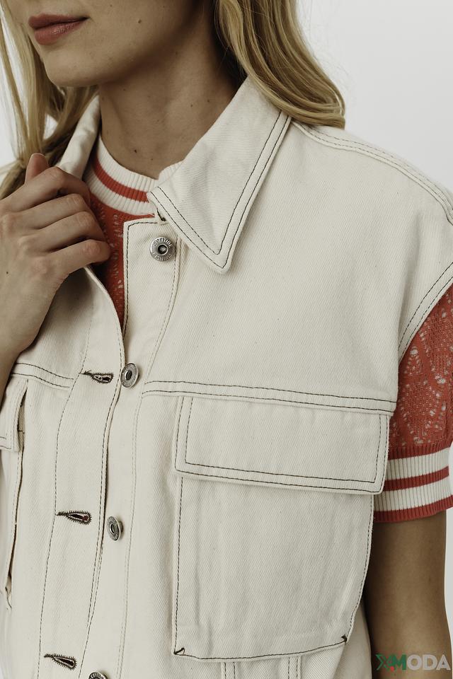 Бежевый жилет Twin Set – стильная модель из денима с контрастной отделкой. Удобный крой и актуальный дизайн делают этот жилет отличным дополнением к вашему гардеробу. Состав: хлопок 100%
