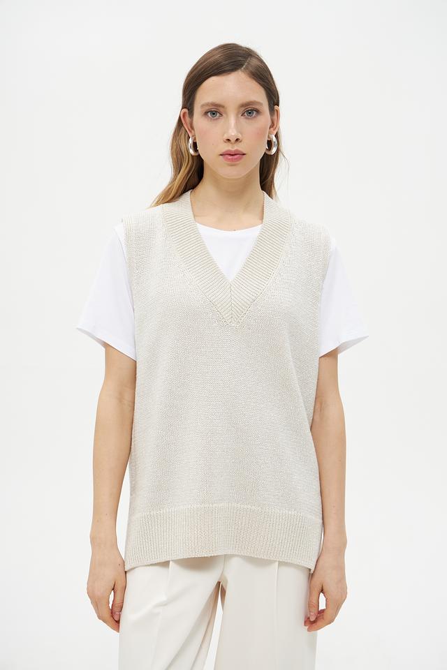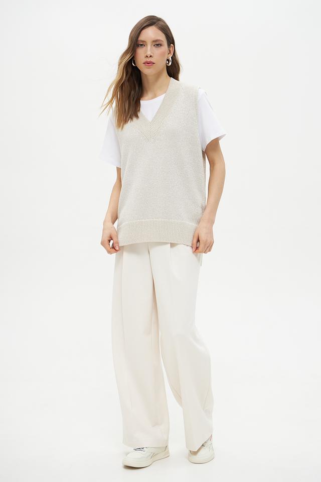Благодаря нейтральному бежевому цвету, жилет легко сочетается с другими элементами гардероба – от джинсов и футболок до юбок и блузок.