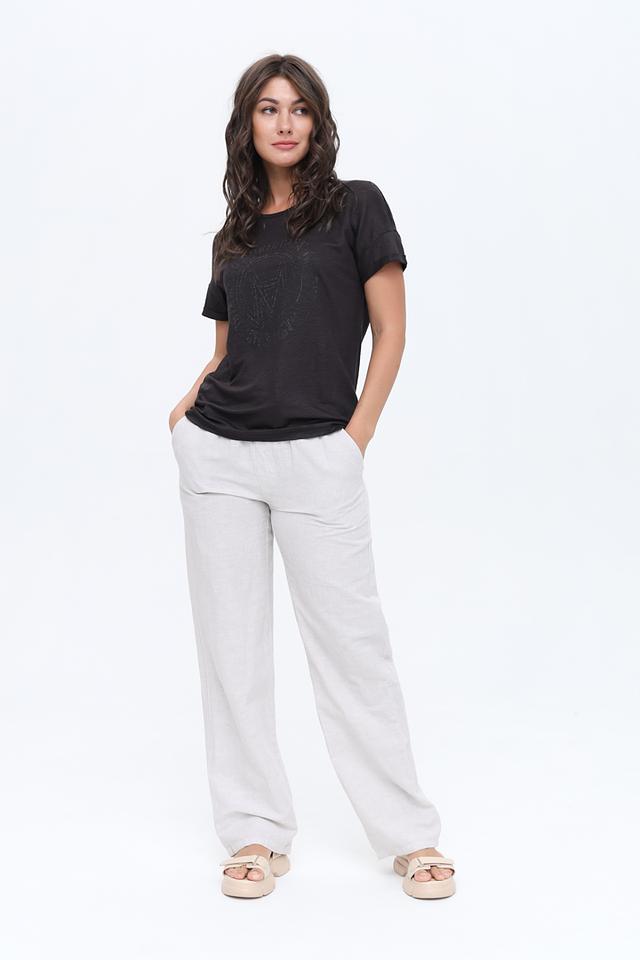 Серые брюки от Zhrill из льна и хлопка — это комфорт и стиль в одном изделии. Прямой крой и эластичный пояс с кулиской обеспечивают удобную посадку, а натуральный состав делает брюки приятными к телу. Состав: лен 55%, хлопок 45%