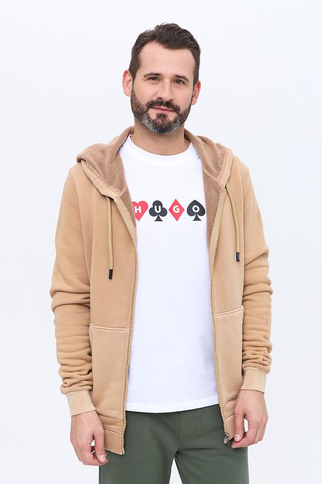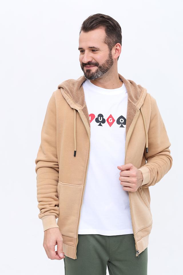 Мужской кардиган Zhrill бежевого цвета на молнии с капюшоном. Изготовлен из мягкого хлопка, обеспечивающего комфорт и удобство. Отличный выбор для повседневного гардероба. Состав: хлопок 100%
