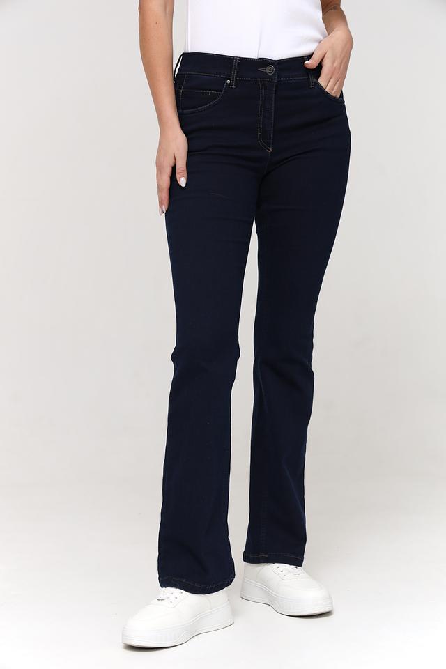 Темно-синие джинсы ZRS клеш – стильная и удобная модель для повседневной носки. Классический крой и эластичный состав обеспечивают комфортную посадку по фигуре и свободу движений. Состав: хлопок 65%, полиэстер 31%, эластан 4%
